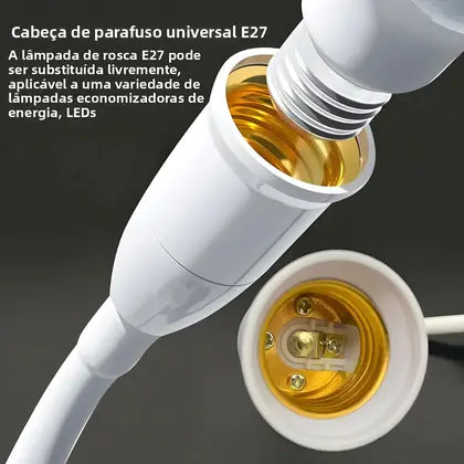 Com o Adaptador E27 Flexível, você ajusta a posição da sua lâmpada exatamente para onde quiser — sem gambiarra, sem complicação. É só rosquear, dobrar e pronto.
