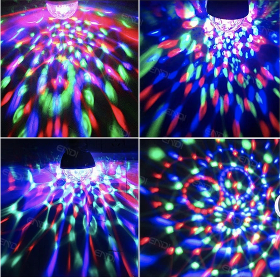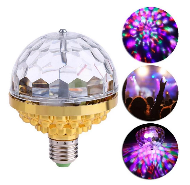 É só rosquear no bocal e pronto: o ambiente se transforma em uma balada colorida e vibrante, com luzes dançantes que giram e piscam ao ritmo da diversão!